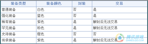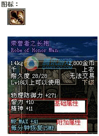 同一件装备中的品 级分为下级,中级,上级,最上级4个阶段,不同阶段的装备的固定属性数值不同(随机)。如:武器的基本攻击,防具的基本防御力。